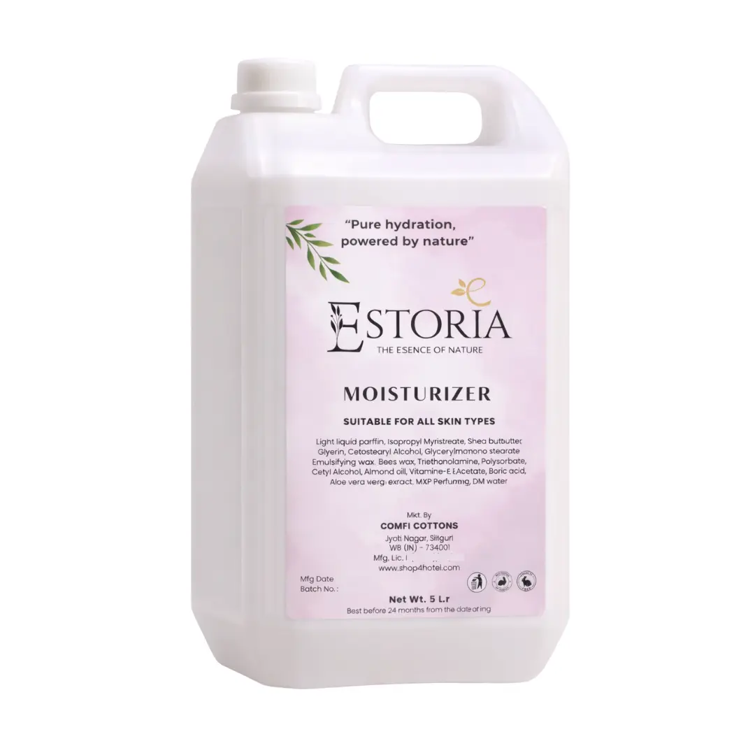 Delight your guests with the soothing touch of Estoria Luxury Guest Moisturizer Jar. Crafted for premium hospitality, this 5L bottle blends Aloe VeraHoney, and Vanilla Extracts to deeply nourish the skin, while the Dream Flower fragrance leaves a subtle, long-lasting floral note that enhances the feeling of relaxation and comfort.