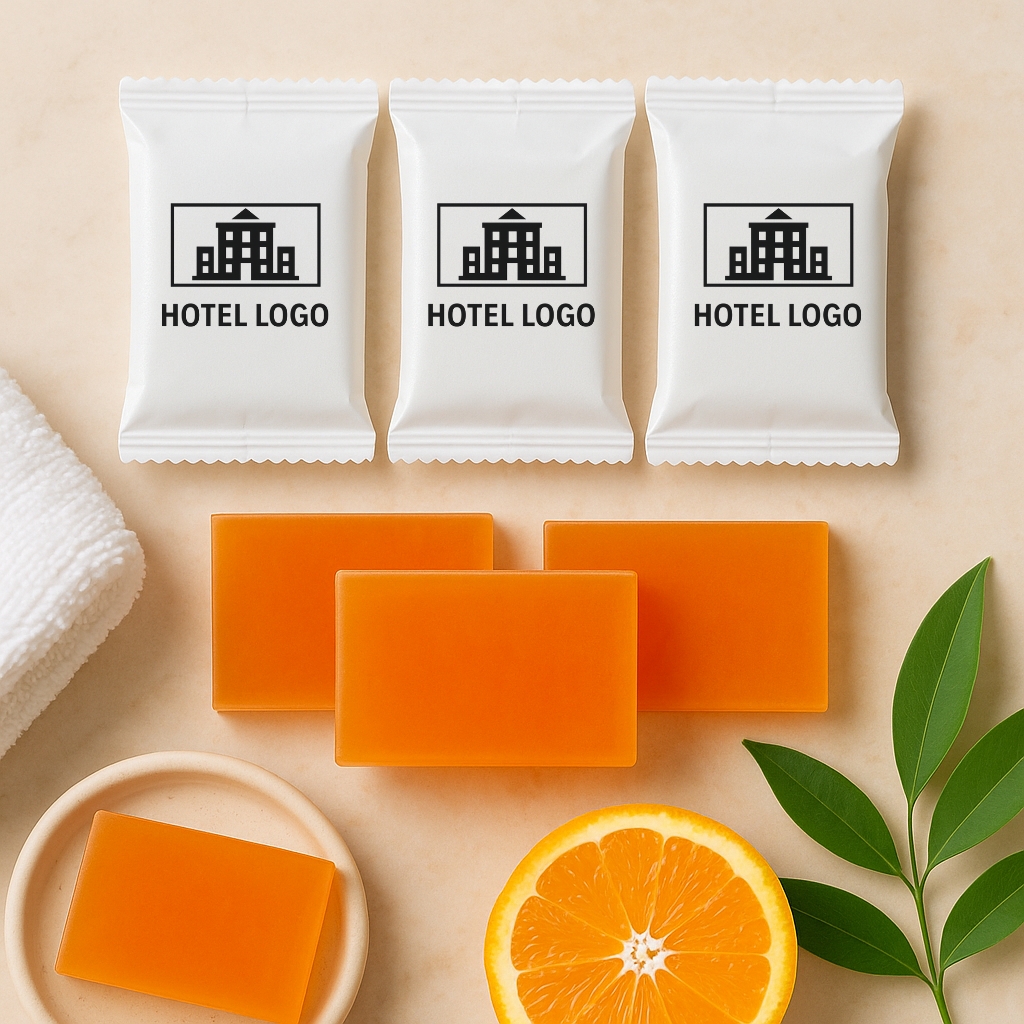 Add a touch of exclusivity to your guest amenities with our Hotel Glycerin Soap ? Orange with Custom Branding. Specially crafted with a gentle glycerin base, this translucent orange soap delivers a refreshing citrus aroma while keeping skin soft and moisturized.