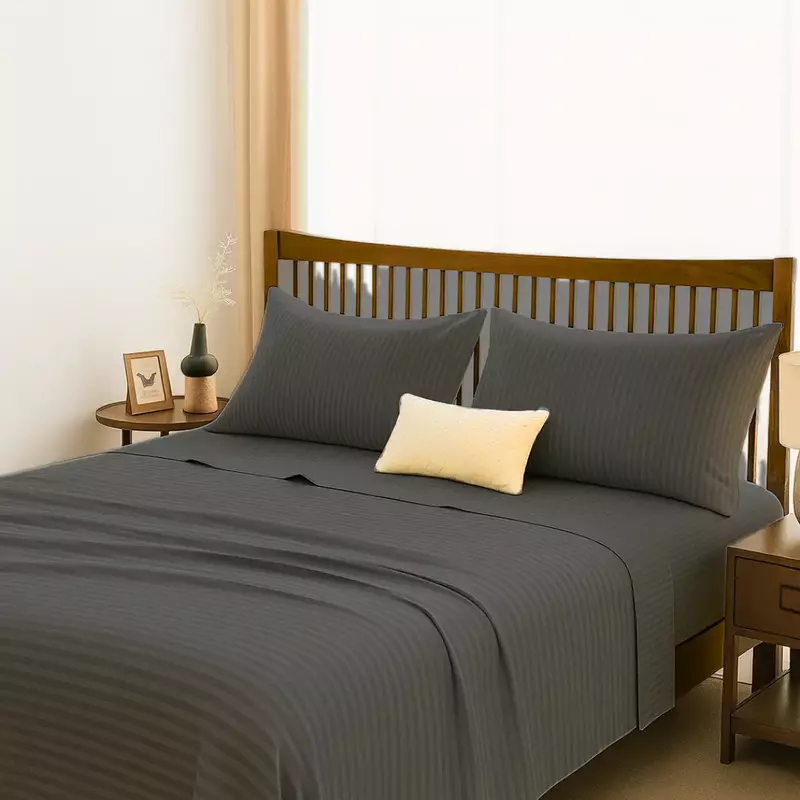Transform your bedroom into a luxurious retreat with our 100% Cotton 500 Thread Count Stripes Bedsheet Silver, designed to deliver the perfect balance of elegance, comfort, and durability. Woven from 100% long-staple cotton fibers, this bedsheet promises exceptional softness, natural breathability, and lasting strength, making it an excellent choice for both everyday use and upscale hospitality settings.