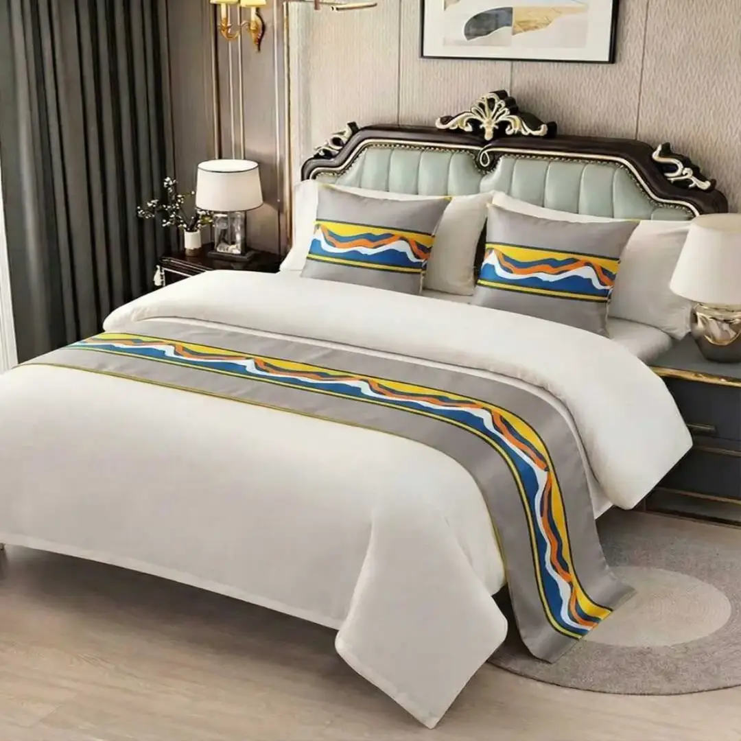 Elevate your hotel room aesthetics with our “” Bed Runner Collection. Crafted from the satin fabric, this collection brings a touch of luxury and timeless beauty to any room.? The smooth satin fabric offers a rich sheen, soft feel, and an elegant drape?perfect for hotels, resorts, and modern homes. Pair it with matching cushion covers to complete the sophisticated look.