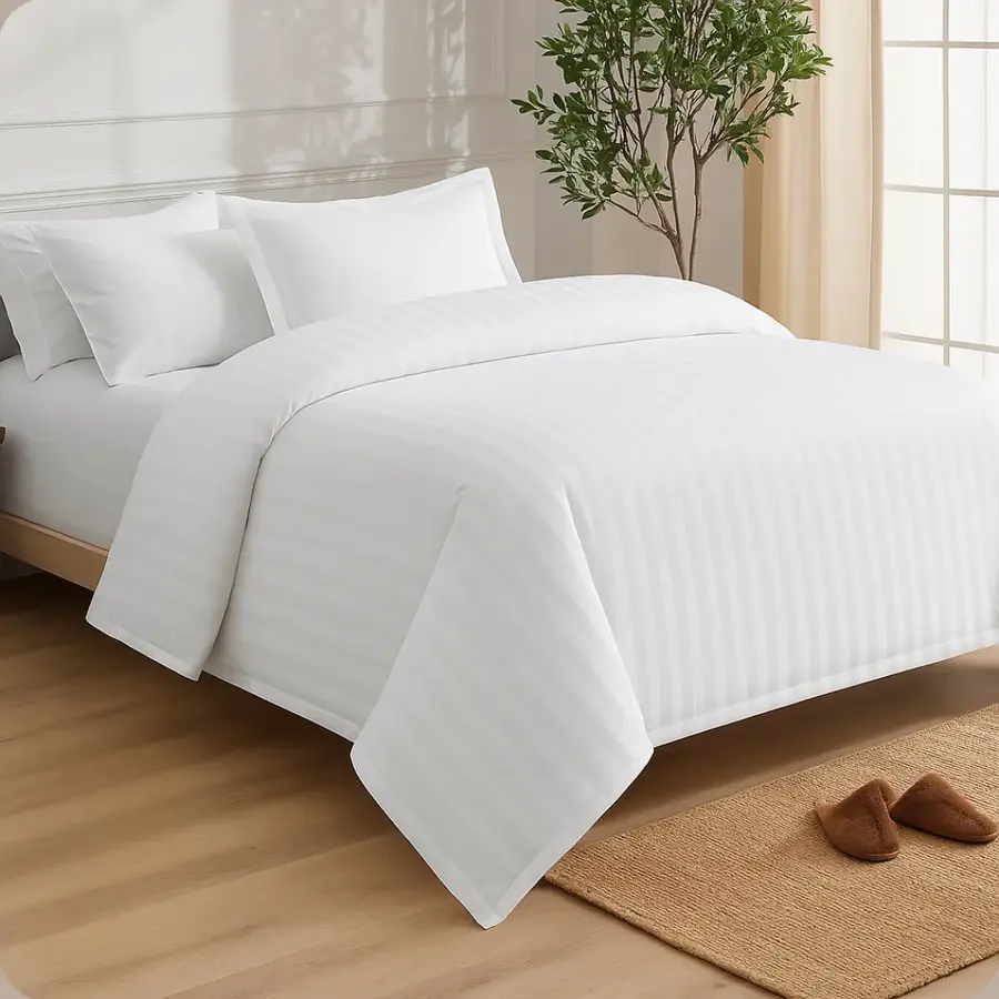 • Experience timeless luxury with our?White Duvet Cover, designed to bring a sense of freshness, purity, and sophistication to your guest rooms. Crafted from high-quality fabric, this cover ensures superior comfort, breathability, and durability.?The crisp white tone reflects cleanliness and calmness, creating a serene ambiance that enhances your bedding presentation and complements any interior d?cor. Its smooth texture and neat finish deliver a premium look that guests instantly recognize and appreciate.