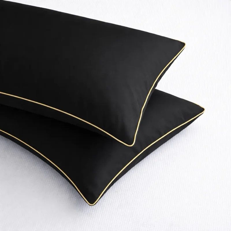 Elevate your bedding presentation with our Microfiber Pillow Cover with Golden Piping, designed to deliver a perfect balance of comfort, durability, and premium aesthetics. Crafted from ultrasoft 300 TC microfiber fabric, these pillow covers offer a smooth, skin-friendly feel while maintaining excellent breathability—ensuring a restful and hygienic sleep experience for your guests.