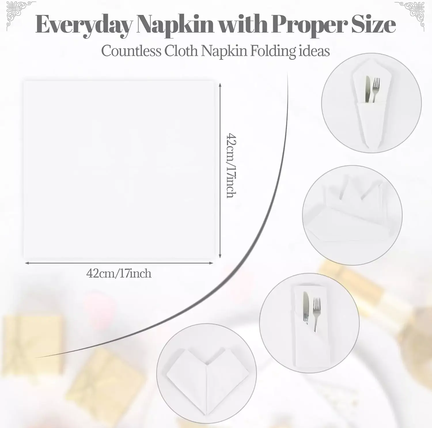 Measuring 17 x 17 inches, this generously sized napkin offers versatility for various occasions. Its dimensions are perfect for creative napkin folds, adding a decorative touch to your table settings. The heavier 240 GSM fabric ensures excellent absorbency and easier handling, making it suitable for formal events and casual gatherings alike.